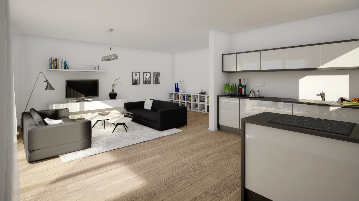 Alle Wohnungen verfügen über Fußbodenheizung, Parkettboden, moderne Bäder, elektrische Rollläden sowie einen sonnigen Garten, bzw. Balkon oder Loggia. Das Gebäude wird mit kostensparender Luft-Wasser-Wärmepumpe versorgt.