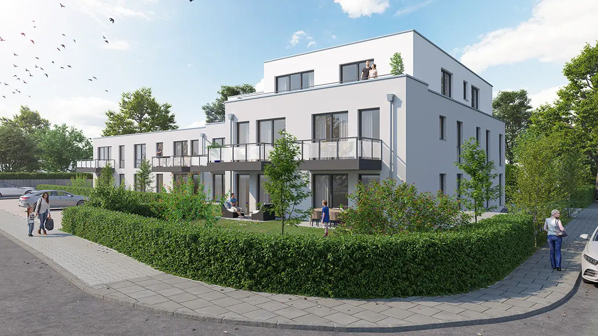 In zentraler Lage von Kaarst entsteht im Asternweg 2-6 in gewachsener Wohnstruktur ein Mehrfamilienhaus mit 10 Wohneinheiten in zweigeschossiger Bauweise zuzüglich Staffelgeschoss sowie im Untergeschoss eine Tiefgarage mit direktem Zugang zum Wohnhaus. Zusätzlich entsteht im Erdgeschoss Haus Nr. 2 eine gewerbliche Nutzungseinheit mit separatem Zugang.